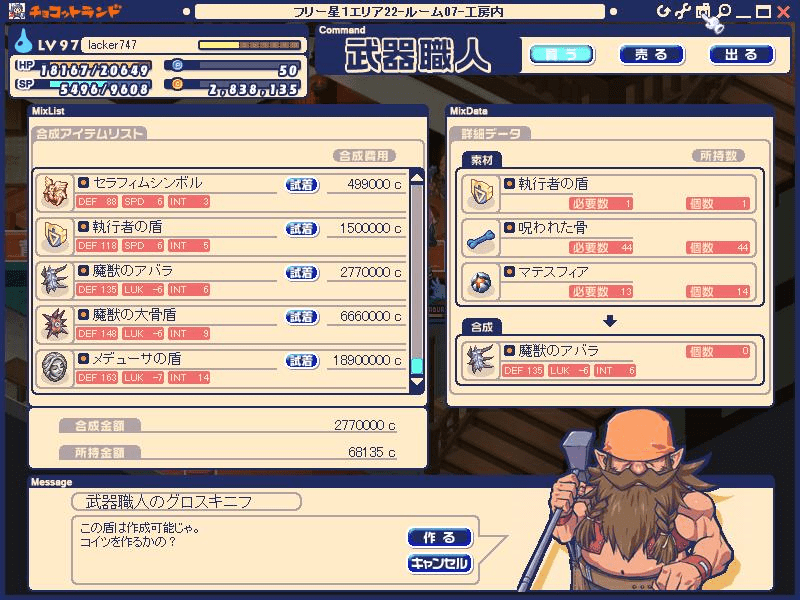 >> 【チョコラン復帰57日目】トリプルあるわん発見&最強剣作成開始
